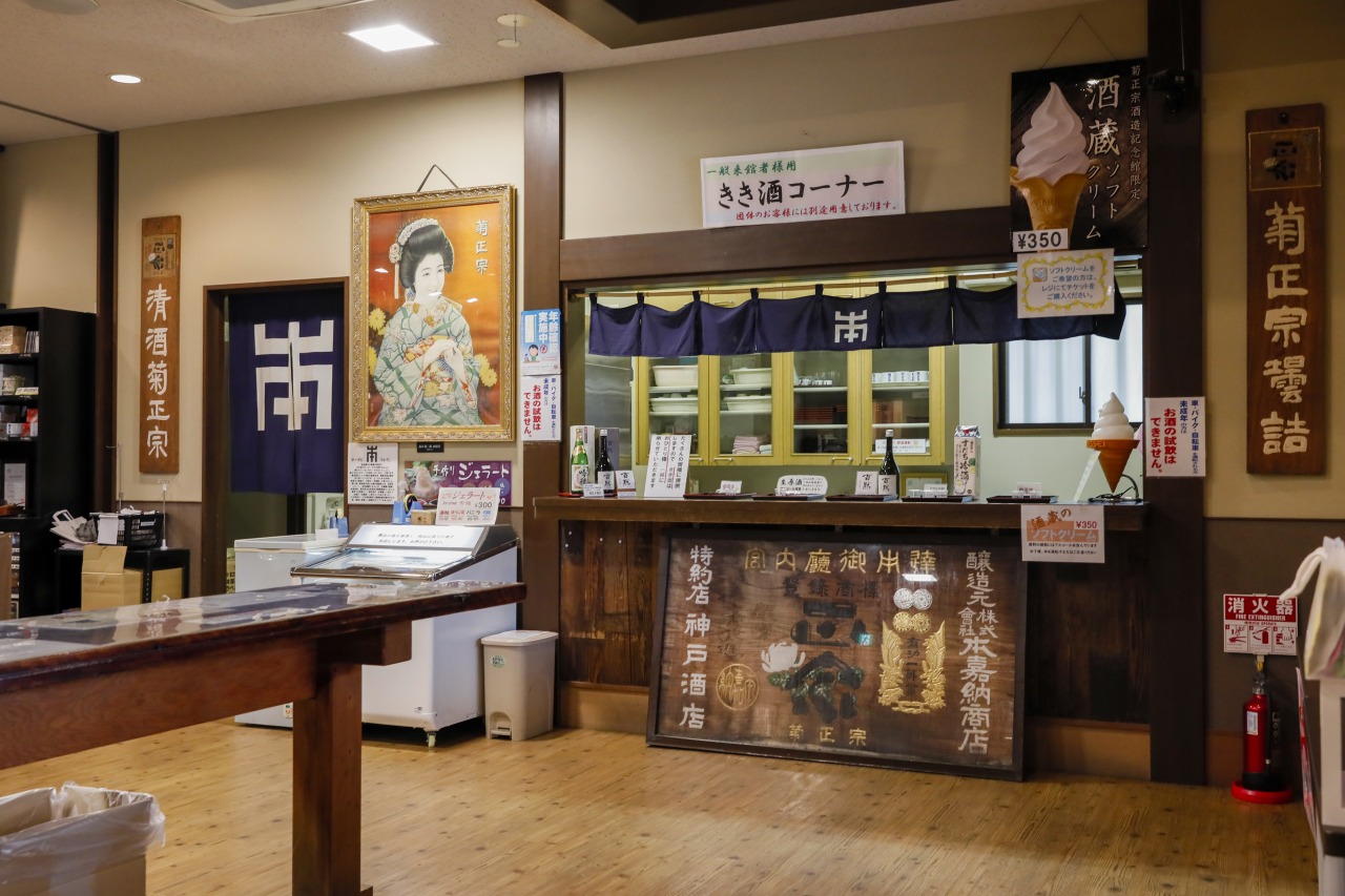 見学の最後には「生原酒」をはじめ、様々な菊正宗の日本酒を試飲できるコーナーがあります。大人気の「酒蔵ソフトクリーム」は売り切れ御免の人気ぶり!隣接する売店には、定番の銘柄から、ここでしか味わえない限定品が豊富に揃っています。純米吟醸酒を使用した酒まんじゅうなどもあり、お土産にもぴったりです。