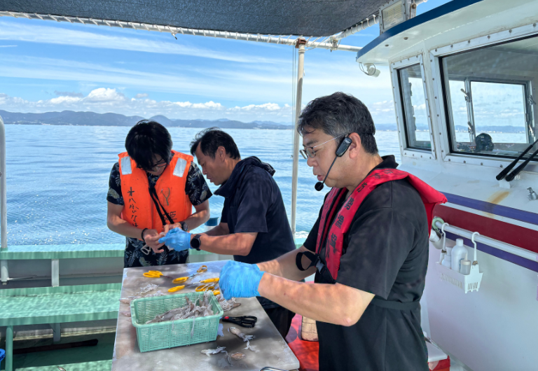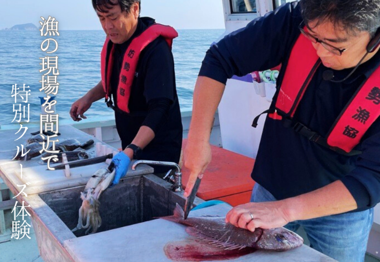 このツアーでは、普段は立ち入ることのできない漁の現場を、特別に間近でご覧いただけます。さらに船上クルーズや新鮮魚介の試食を通じて、海と島の恵みを全身で感じていただけるようにしました。