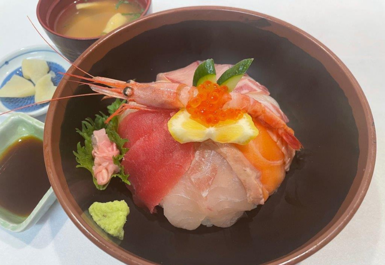 ・昼食は坊勢の新鮮魚介を使った海鮮丼(※苦手な具材やアレルギーがある方は事前にご相談ください)