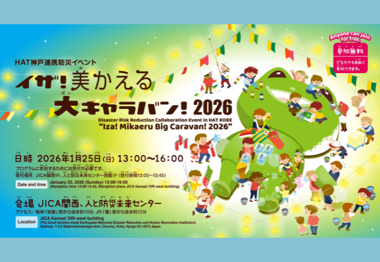 阪神・淡路大震災から31年を迎え、17回目の開催となる今年度の「イザ!美かえる大キャラバン!」では、子どもから大人まで多様な人が楽しみながらしっかり学べる防災プログラムを体験的に学ぶ機会となっています。