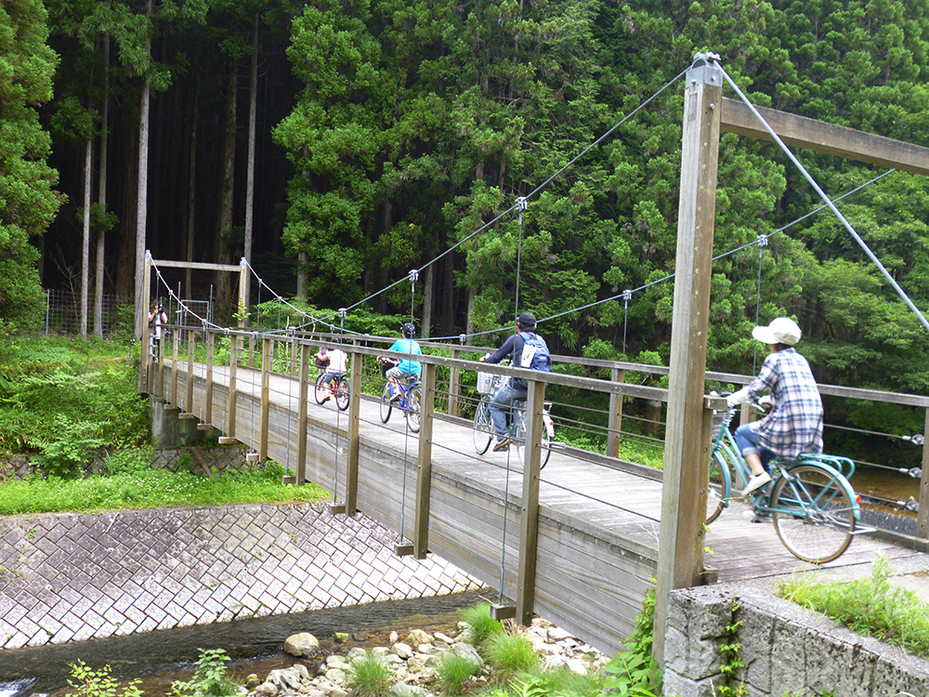 神河町の中でも特に自然がいっぱいの越知谷方面を、上りは路線バスに約30分ほど乗って(自転車も乗せる)行き、下りは自転車をバスから降ろし、自然の中を探索したり、神河町の名所を観光しながら自由に帰ります。
