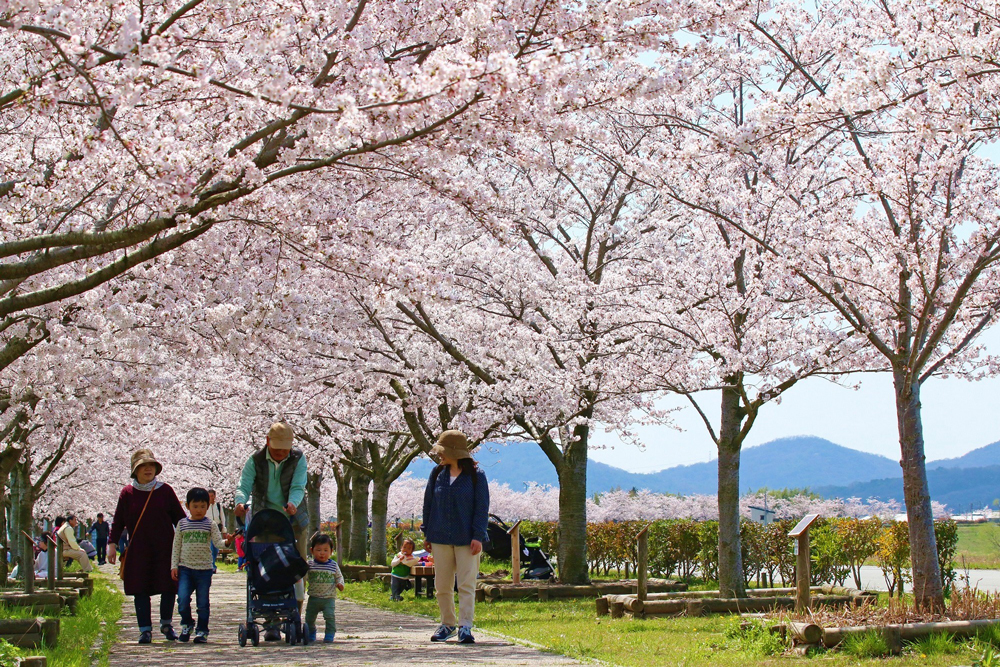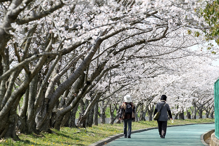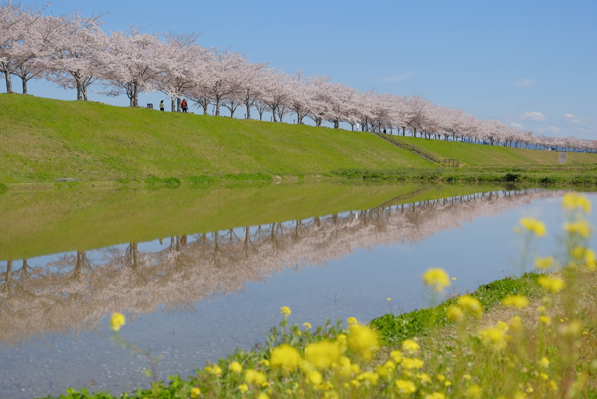 全長4kmと、西日本最大級の規模を誇る桜並木があります。
