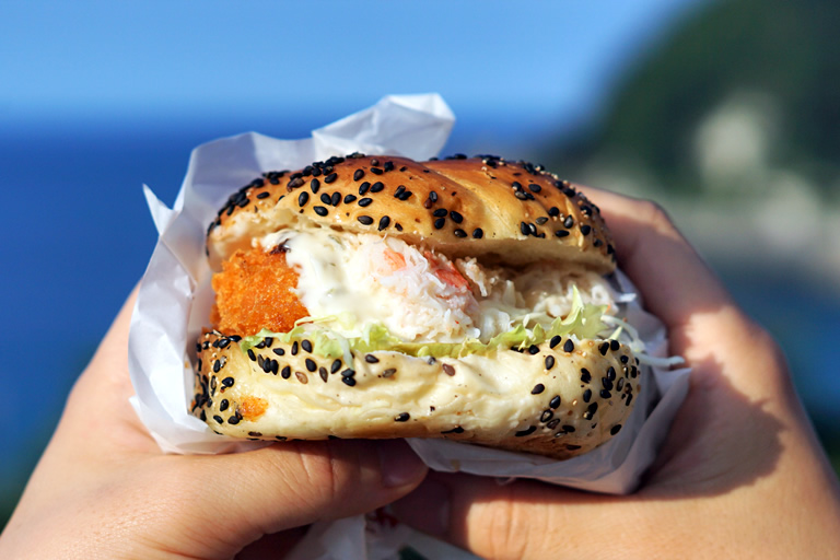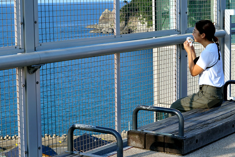 店内に飲食スペースがありますが、テイクアウトして、真上にある旧余部鉄橋の橋脚を利用して作られた展望施設「空の駅」で食べるのが私のオススメです。