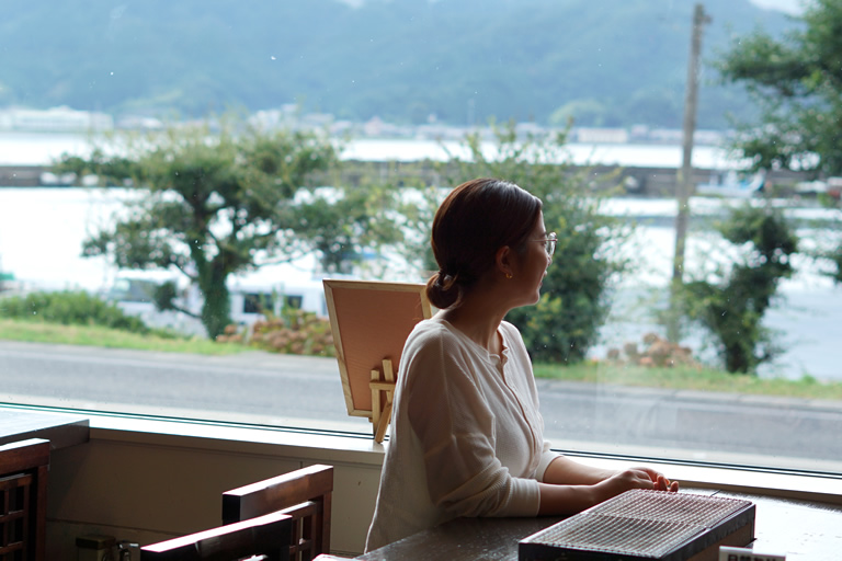 一軒目は、香住漁港の近くにある「カニ工房 まるや」。香住漁港のそばにあって、店内からは日本海が望めます。