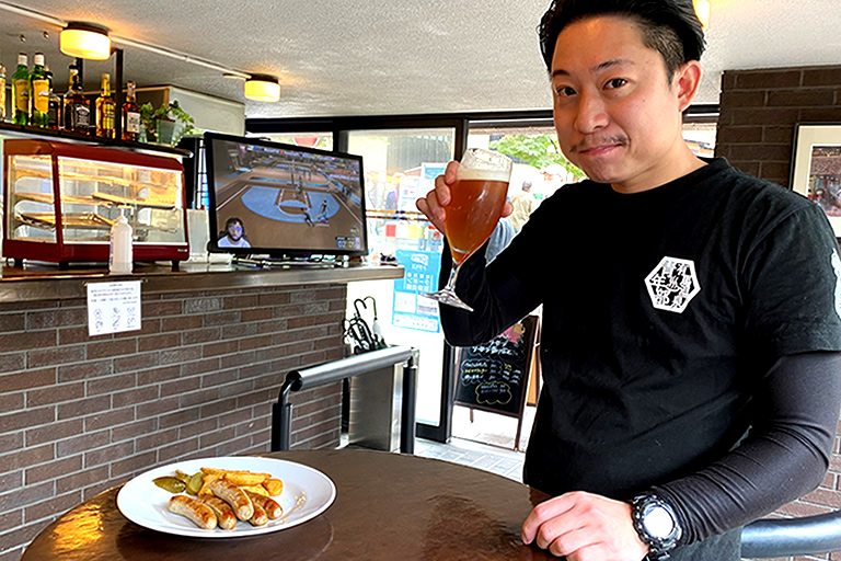 セルフサービスのカジュアルなバーで、昼から気軽にビールが飲めます。兵庫県多可町で作られたこだわりのソーセージなど、おつまみも揃っています。