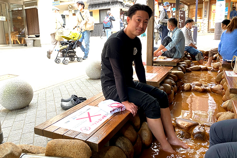 「金の湯」のそばにある足湯にも立ち寄って、散策で疲れた足を癒してくださいね。