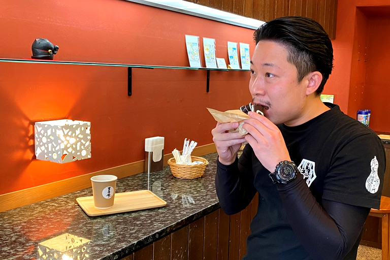 オリジナルブレンドの珈琲と相性ぴったりです!個人的には、チョコレートコーティングのドーナツがおすすめです。