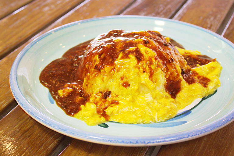 私たちのオススメメニューは、こちらの「オムハヤシ」。こちらは、ハチ北高原の「クリスタKAZAO」で食べることができます。