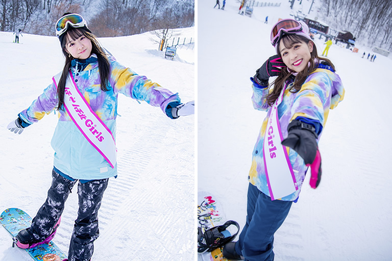 標高1,200m超のハチ・ハチ北スキー場は、4月上旬まで滑れるので、春スキーのスポットとしても人気です。私たちは今シーズン中に、連続ターンができるようになるのが目標です。