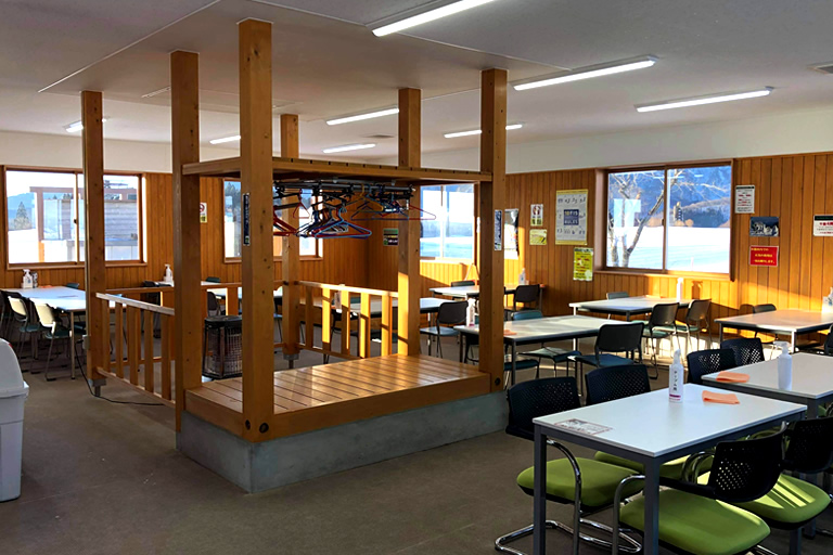 物干しエリアもあるので、転びまくってびしょ濡れのグローブを乾かすのに重宝しますよ(笑)。自動販売機や畳スペースもあります。