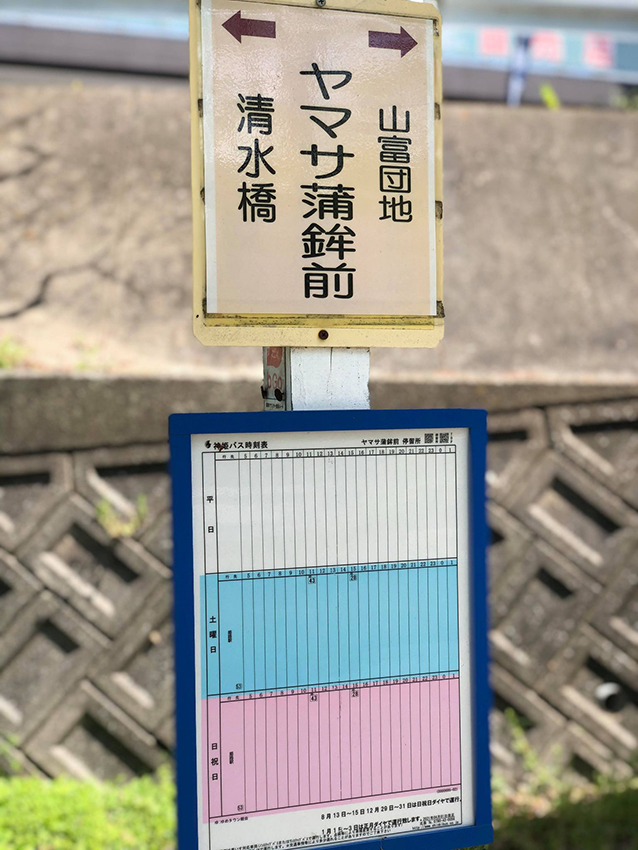 姫路駅北口から、平日は、51・52番バスで清水橋停留所まで、土日祝日の場合は、本数が限られていますが良い時間帯があれば、ヤマサ蒲鉾前で停まる53番バスが運行しています。