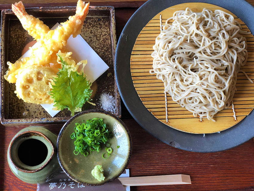 また、ヤマサ蒲鉾工場から徒歩5分のところにある夢乃そばでは、夢前川を眺めながら、美味しいお蕎麦が頂けます。注文を受けてから蕎麦を打っているそうです(^^)