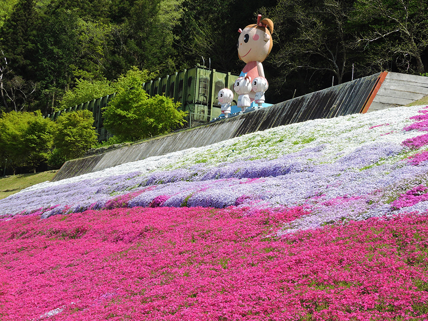 奥にはさっちゃんを模した芝桜も