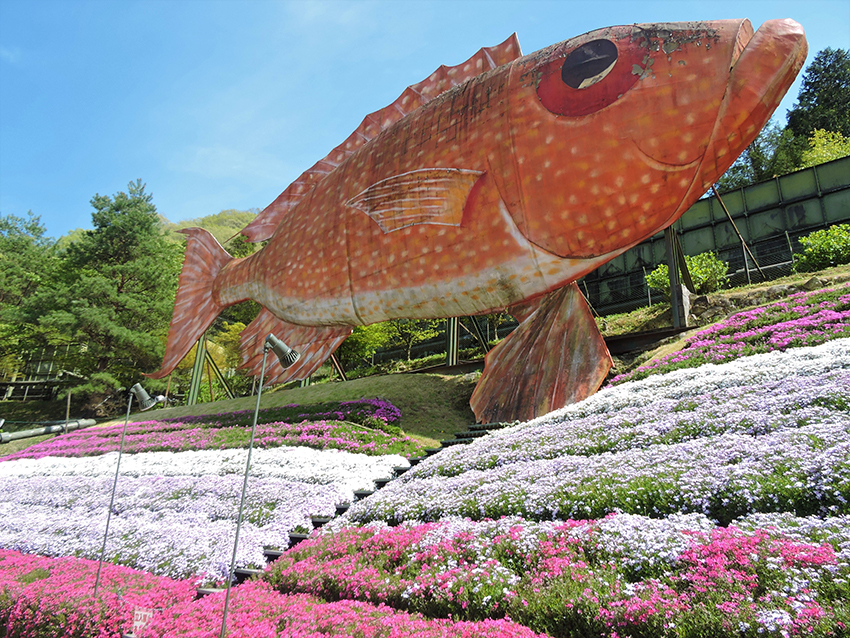 芝桜とオブジェ 春だけのコラボレーション~ヤマサ蒲鉾本社工場~