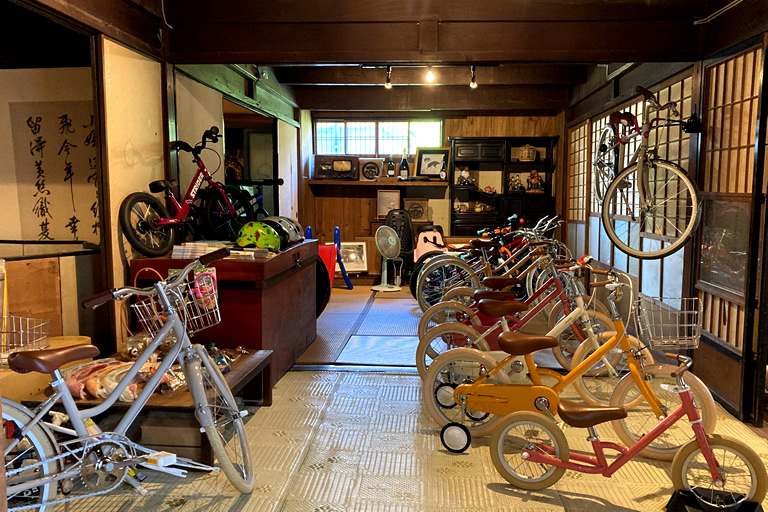 古民家の中にずらーっと自転車が並ぶ光景はちょっとおもしろいです。