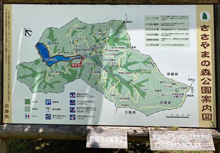 ダム沿いに奥へ進むと「兵庫県立ささやまの森公園」もあります。