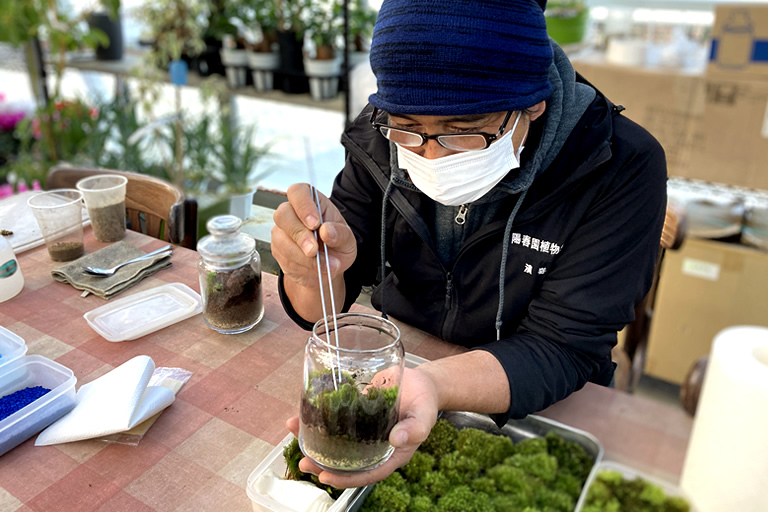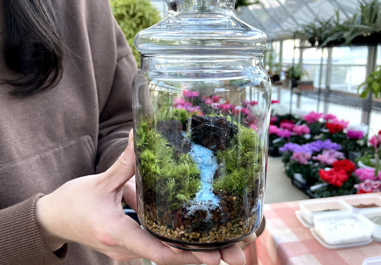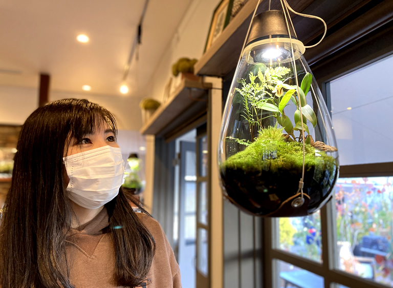 「苔テラリウム」は、手軽に園芸が楽しめて、インテリアとしても人気なので、じわじわブームが広がっています。陽春園の体験にも、今年だけで500人以上が参加しているそうです。