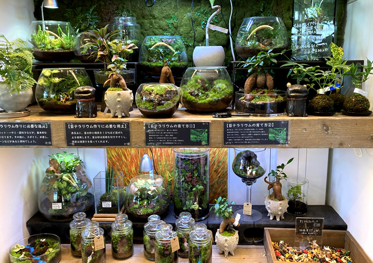 園内の奥にある「PARCO GIOCHI(パルコジョキ)」では、苔テラリウムに必要な材料をはじめ、大小さまざまなサイズと世界観の作品も販売されています。