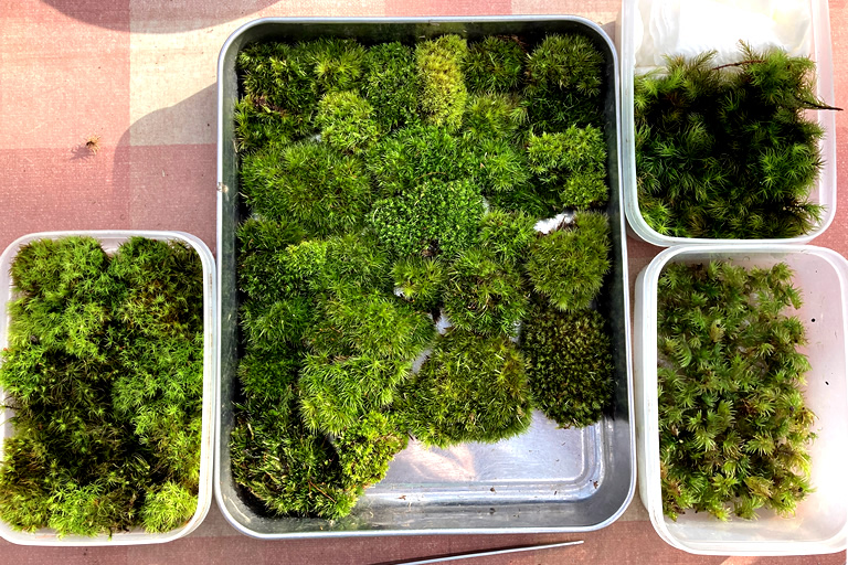 苔の種類は日によって変わるそうで、この日はホソバオキナゴケ、タマゴケ、ヒノキゴケ、オオシラガゴケの4種類。