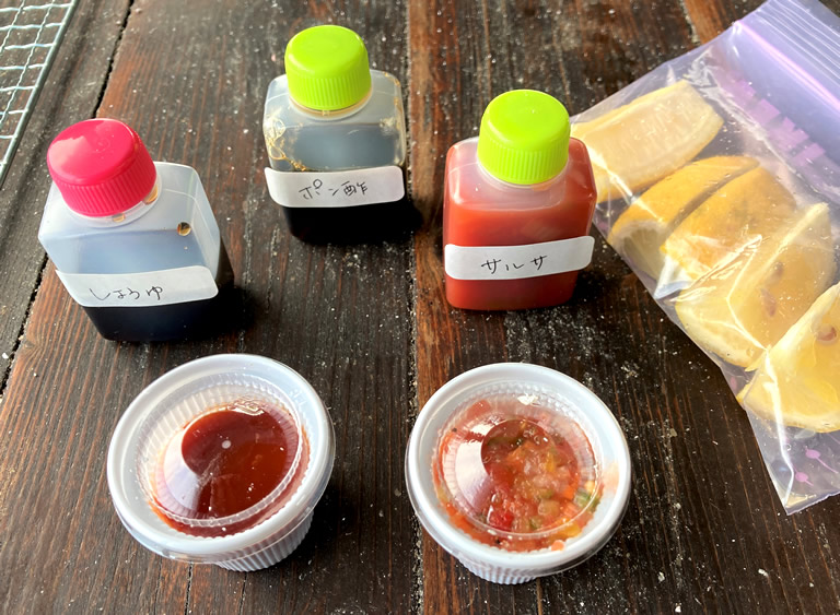 牡蠣小屋を満喫する大事なポイント(攻略法)が、調味料&トッピングの持ち込みです。