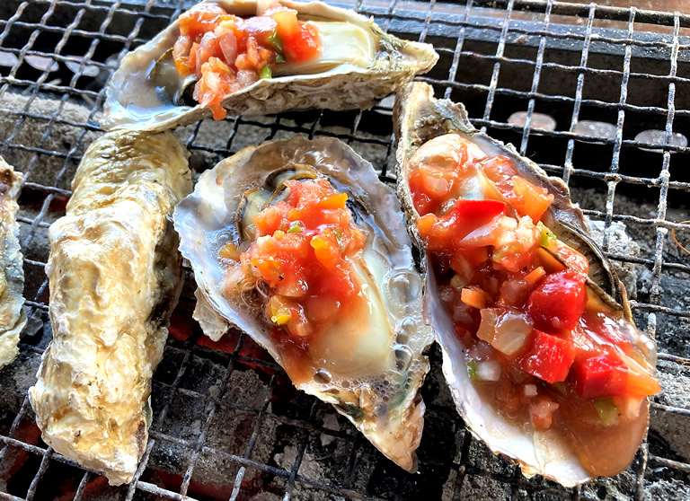 「牡蠣小屋」は、炭火を囲んで、バーベキュースタイルで牡蠣を食べるところ。