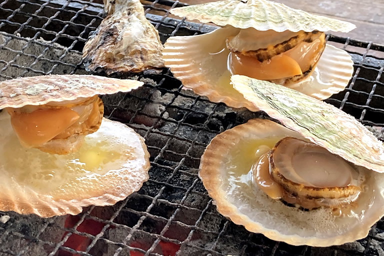 殻が開いたら、ナイフで殻についている貝柱を外し、好みの状態まで加熱して出来上がり。
