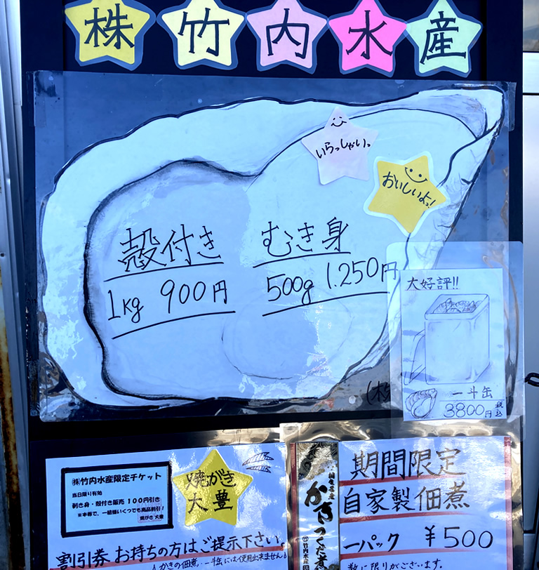近くに、相生の牡蠣の直売所も数軒並んでいます。