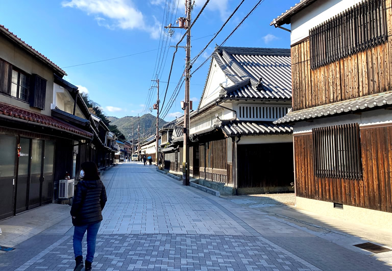 坂越の町並みや文化財は2018年に『日本遺産』に認定されていて、石畳のメインストリート・大道には商家や船主屋敷、酒蔵などが軒を連ねています。お腹がいっぱいで立ち寄れませんでしたが、カフェもありました。