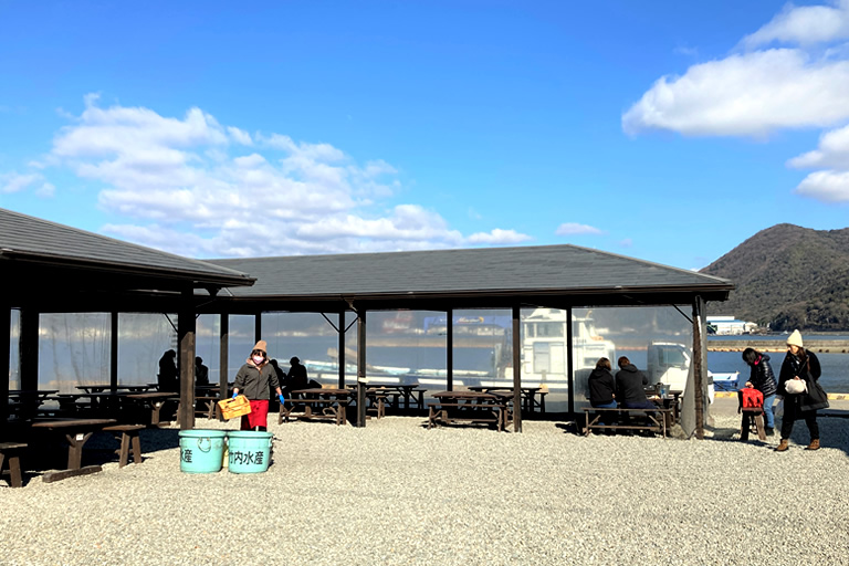 網元直営のお店で、相生湾沿いという絶好のロケーションにあります。建物の向いに広々したバーベキュースペースがあって、海を眺めながら新鮮な海の幸を頂けるって、最高に贅沢です。無料駐車場も約30台分あります。