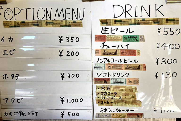 飲み物や牡蠣以外の魚介類も受付で購入できます。