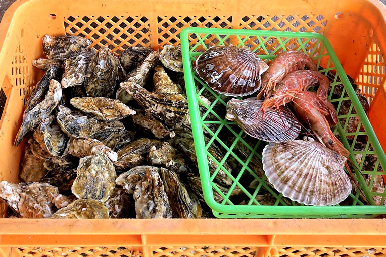 どの工房も朝に水揚げされたばかりの牡蠣が山盛りになっていて、圧巻。