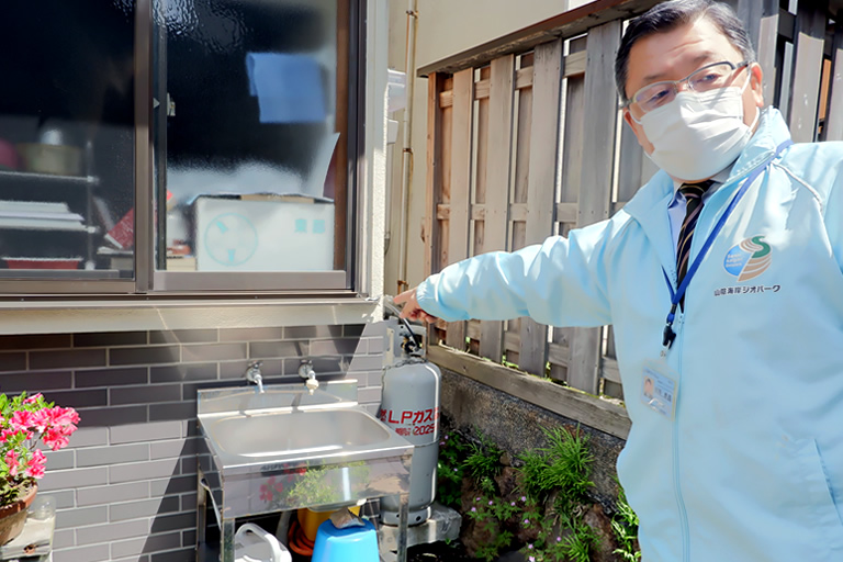 温泉は大好きでよく行きますが、湧き出し方の違いなんて考えたことがなかったと思いながら話を聞いていると、朝野さんが立ち止まったのは民家の軒先。