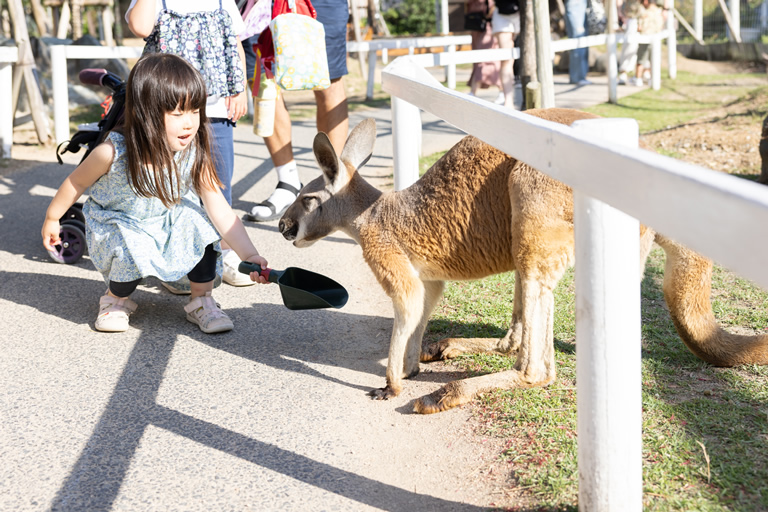 カンガルーやアルパカ、魚や鳥など、さまざまな動物に餌やりできます。