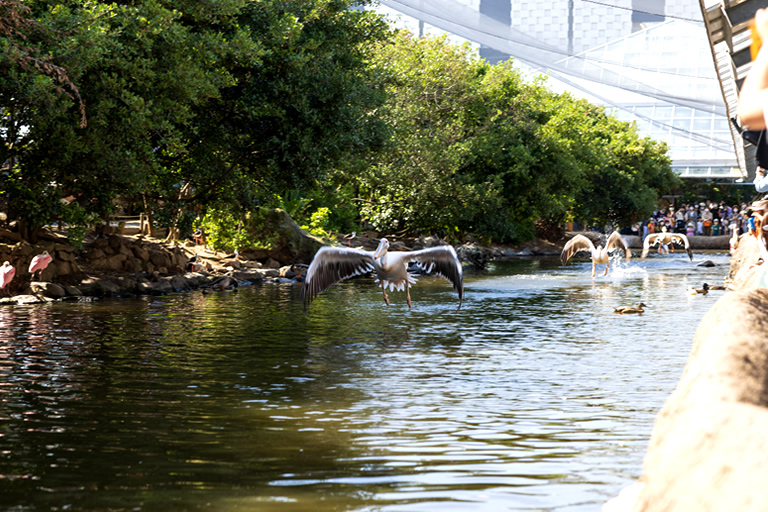 そして最後は「アフリカの湿地」エリアで見ることができるペリカンフライト。