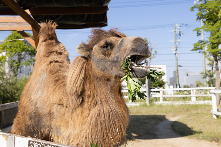 ▲ラクダライドを終え、食事を楽しむラクダの様子。