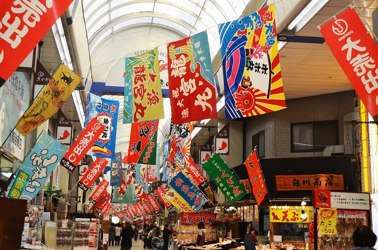 約400年の歴史がある「魚の棚商店街」で、グルメ巡り・ぺったん焼体験をしよう!