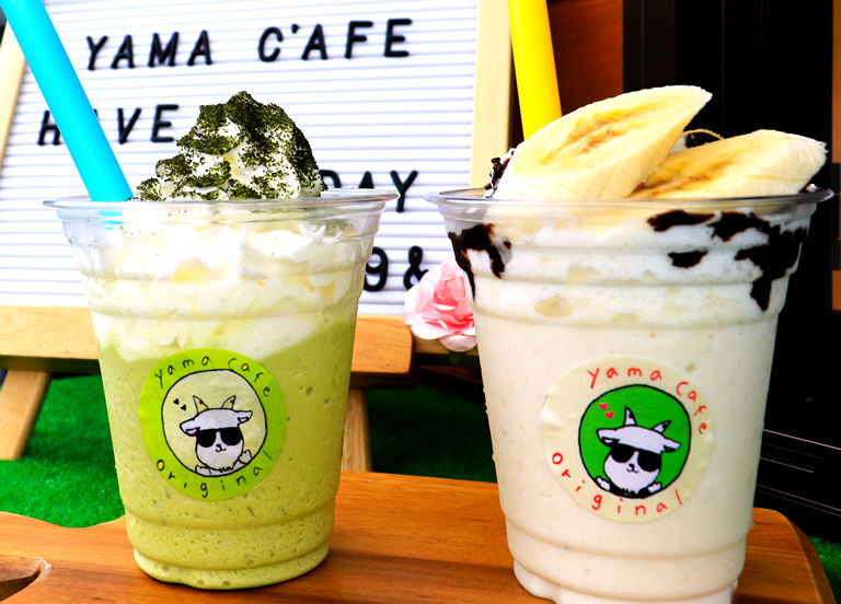 中でも人気なのが「オリジナルシェイク」です。今回は「特製バナナ&チョコシェイク」と「特製抹茶&朝来みどり茶シェイク」を注文しました。朝来で作られているお茶の葉が使われていて、香りもよく味も濃くておいしいです。