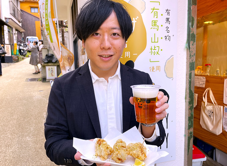 有馬温泉観光協会青年部のメンバーで、創業70年の旅館「高山荘華野」の三代目・駿川裕司が、新登場のお店をご案内!