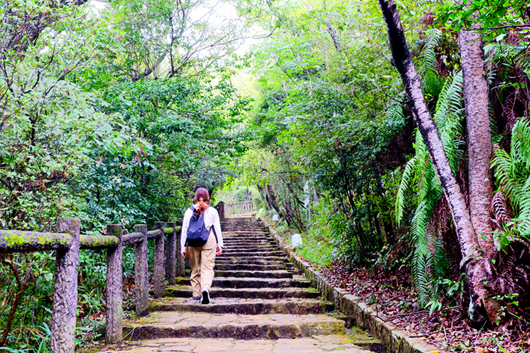 登山口からしばらく、竜山石を使って作られた石段や階段が続きます。