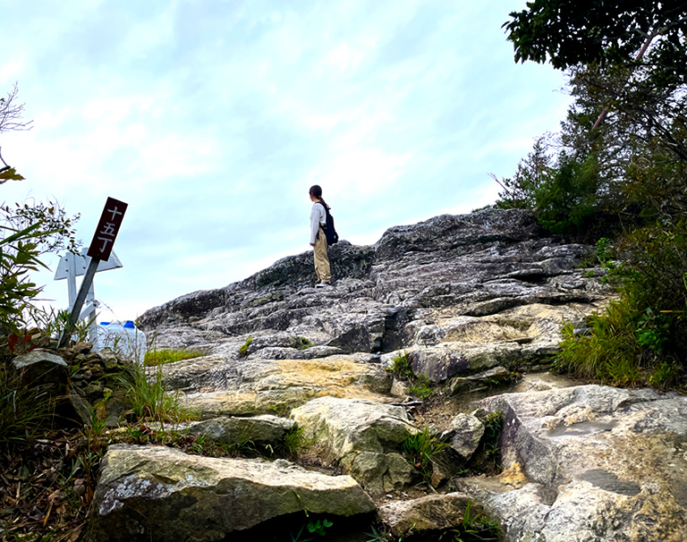 中腹の十丁あたりから岩肌が見えてくるので、足元に注意が必要です。