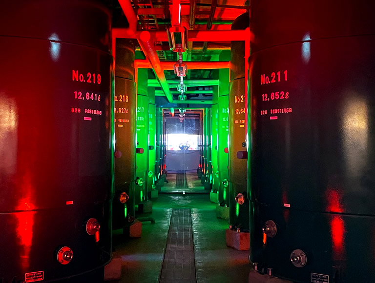 お店の一番奥には、日本酒のタンクが神様のように鎮座。
