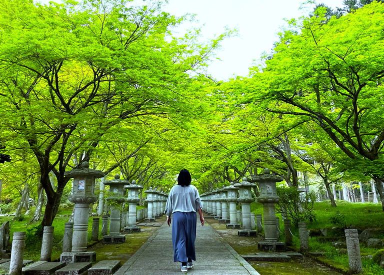 10ヵ寺はいずれも秋になると紅葉を目当てに観光客で大賑わいのお寺ですが、実は春から初夏の「青もみじ」もとってもキレイなんです!しかも「青もみじ」は見ごろが長く人も少ないので、古刹と新緑の美しさをしみじみと味わえて、映え写真も存分に撮れるんですよ。