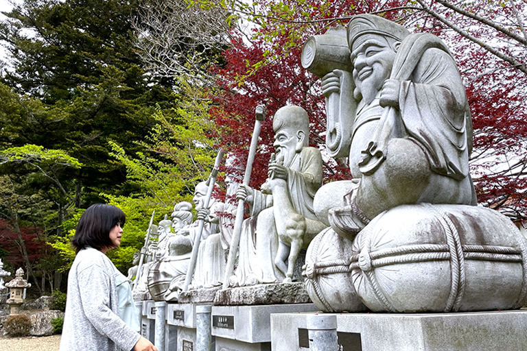 山門前には、大きな七福神の石像が並んでいます。