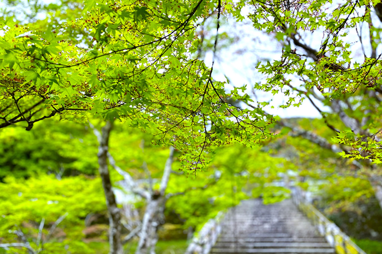 青もみじの季節なら、雑誌やSNSに度々登場している映える写真がゆっくり撮影できますよ。