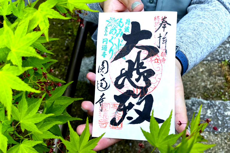 『青もみじめぐり』のイベント期間中は、10ヵ寺すべてで、限定の青もみじの御朱印が頂けます。ちょっと特別な感じが、旅の素敵な思い出になります。