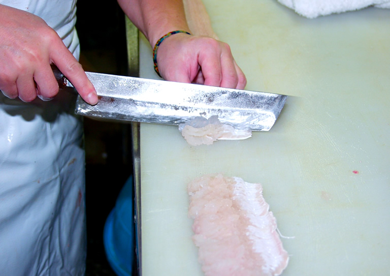 湯引きとかで食べるなら、小ぶりのものがあっさりと皮が柔らかくて良いんですが、身の旨味でいうと、本当に美味しいのは脂が乗った1kg以上のもの。