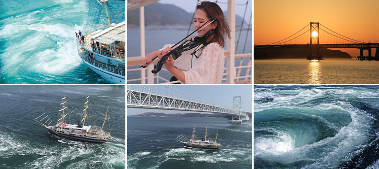 なかでも渦が大きくなる大潮と大渦の日に兵庫デスティネーションキャンペーン特別企画サンセットクルージングを実施し、雄大な大渦とロマンチックなサンセットに包まれる中で、優雅な生演奏が奏でられ、日常から切り放された特別な空間で、特別な体験をしていただくことができます。