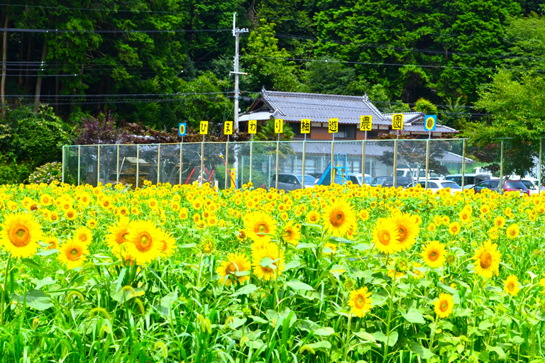『ひまわり柚遊農園』は、地元ボランティアの方々による手作りのひまわり畑で、例年見ごろとなる7月下旬~8月上旬のみ開園。