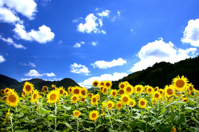 丹波市春日町柚津地区の柚津川の両岸に広がる農園に、約40万本のひまわりが植えられています。