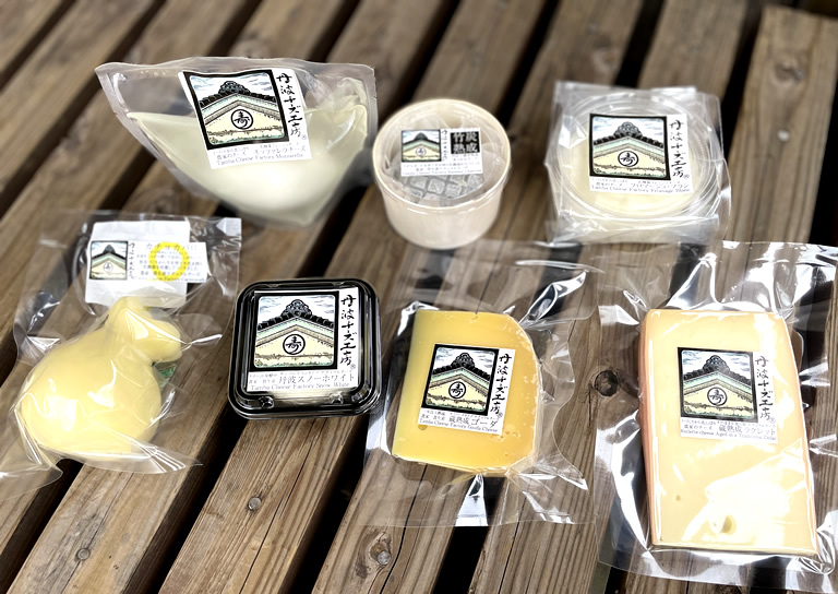 「丹波チーズ工房」で現在販売されているチーズは、「蔵熟成ゴーダ」に加え、婦木敬介さんが初めて商品化したソフトタイプの「丹波スノーホワイト」や新商品の「蔵熟成ラクレット」など、全8種類。
